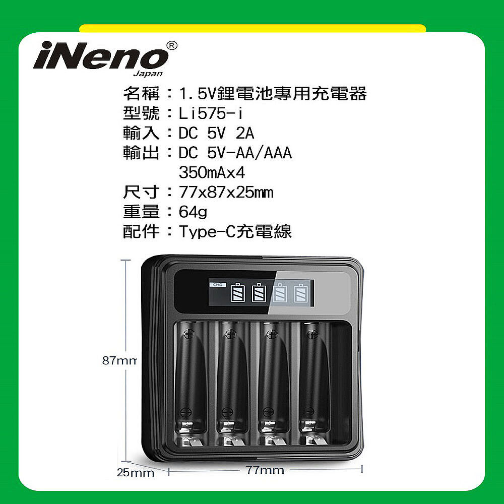 【ineno】3號/AA恆壓可充式1.5V鋰電池: