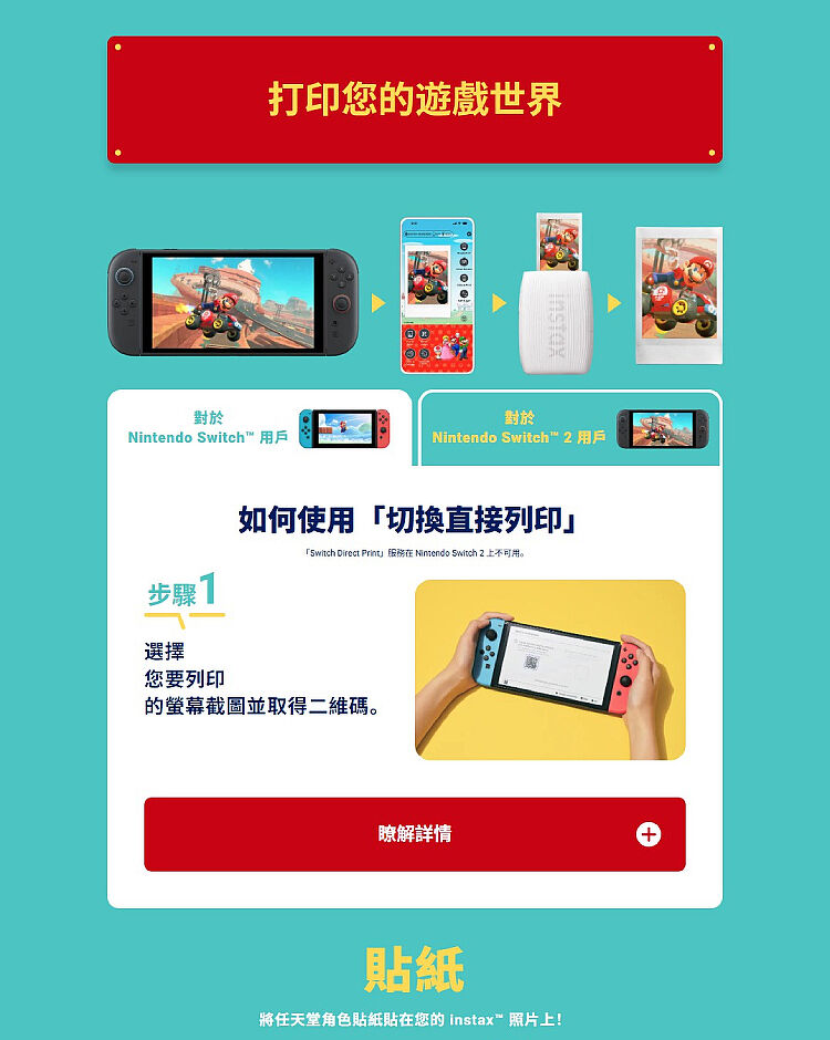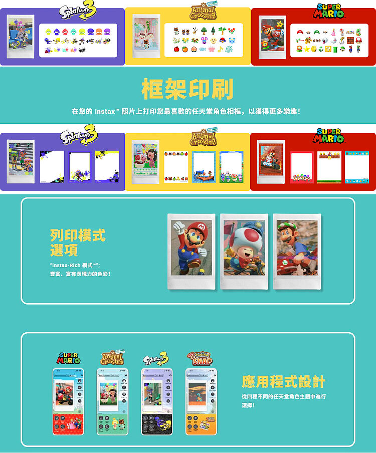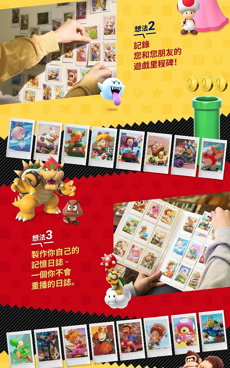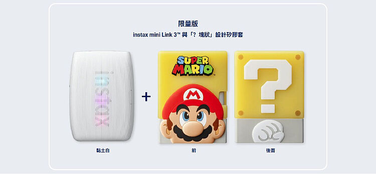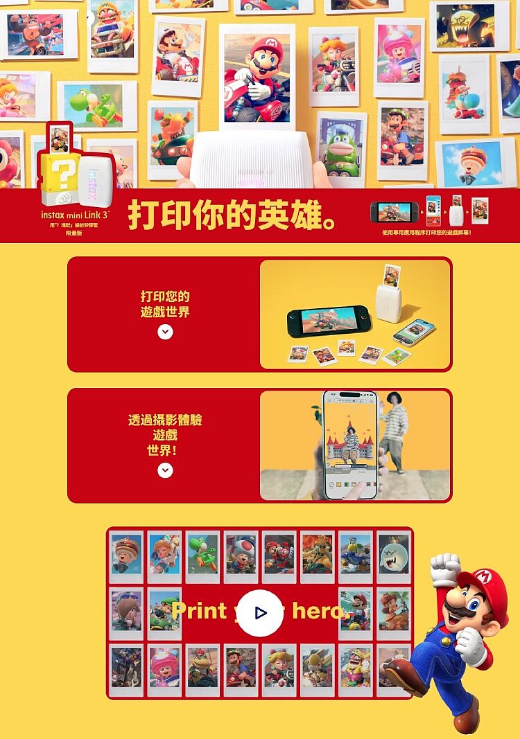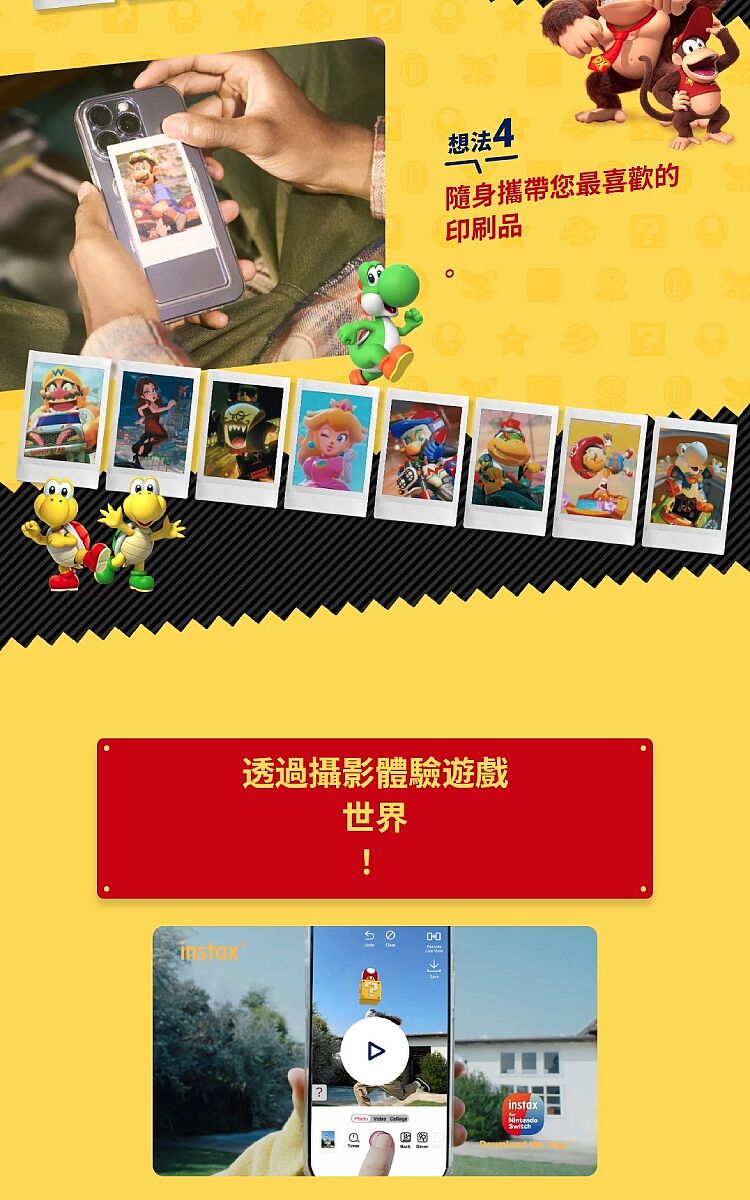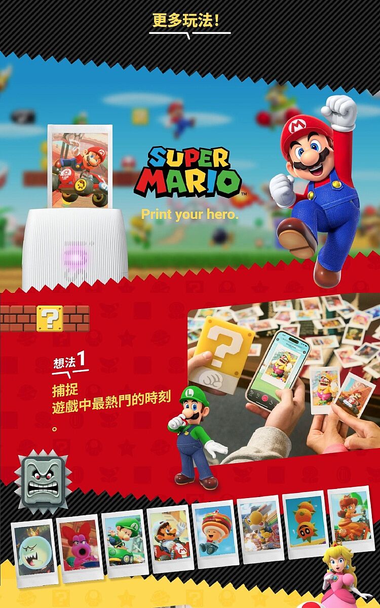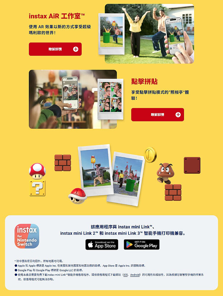 最新版本的 instax mini Link™ for Nintendo Switch 應用程式,新增 instax AiR Studio™ 模組,讓使用者能以超級瑪莉歐的元素,創造出更豐富有趣的 AR 影像。