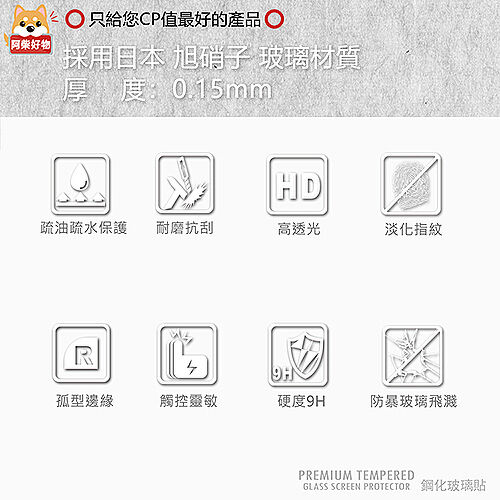 功能:抗潑水、抗指紋、抗刮、鋼化、疏油、抗衝擊、靜電式、奈米