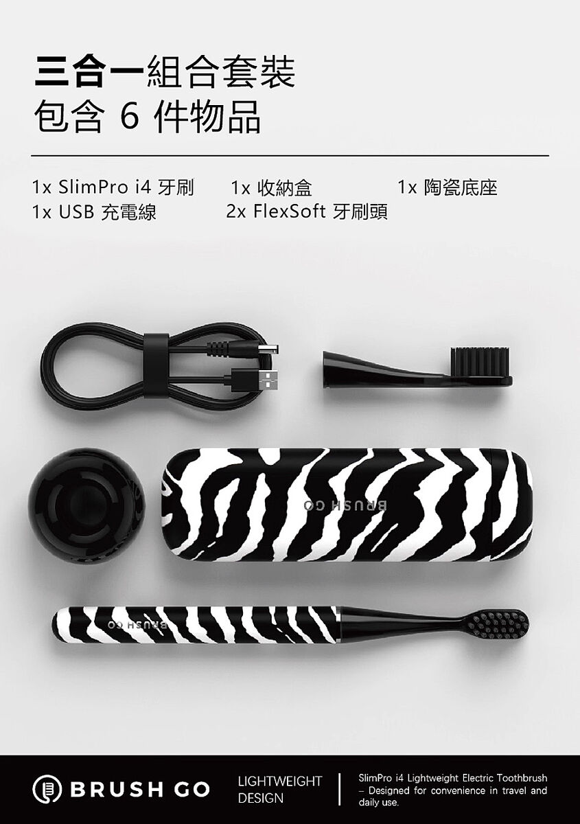 內容物:電動牙刷,收納盒,陶瓷底座,充電線,牙刷頭x2