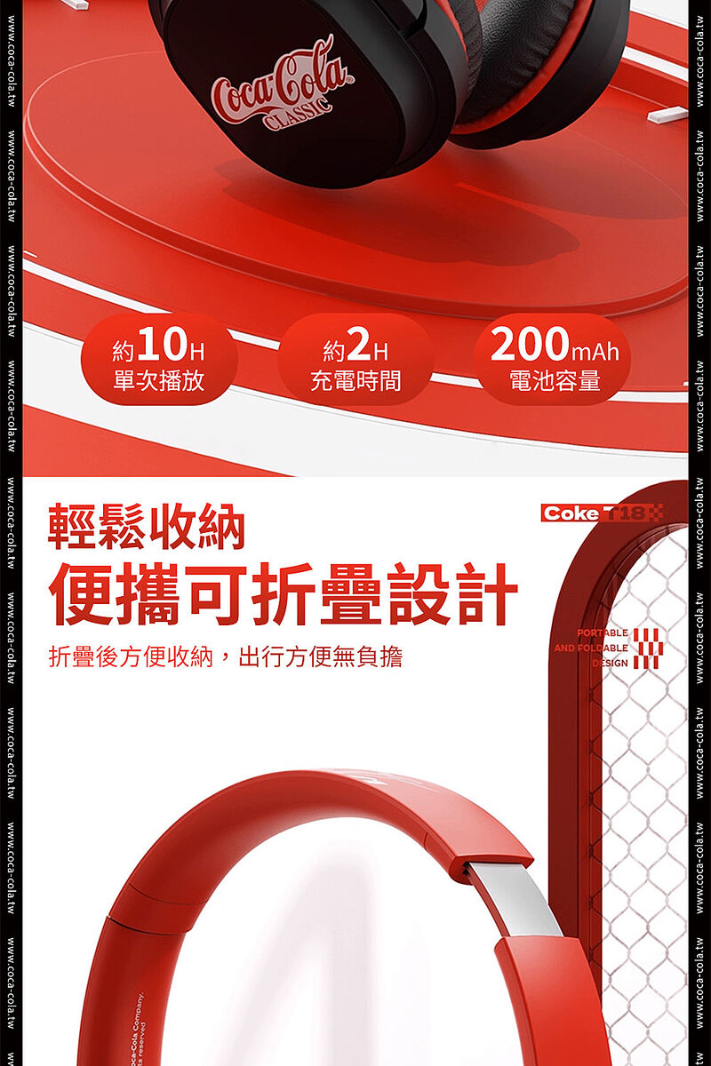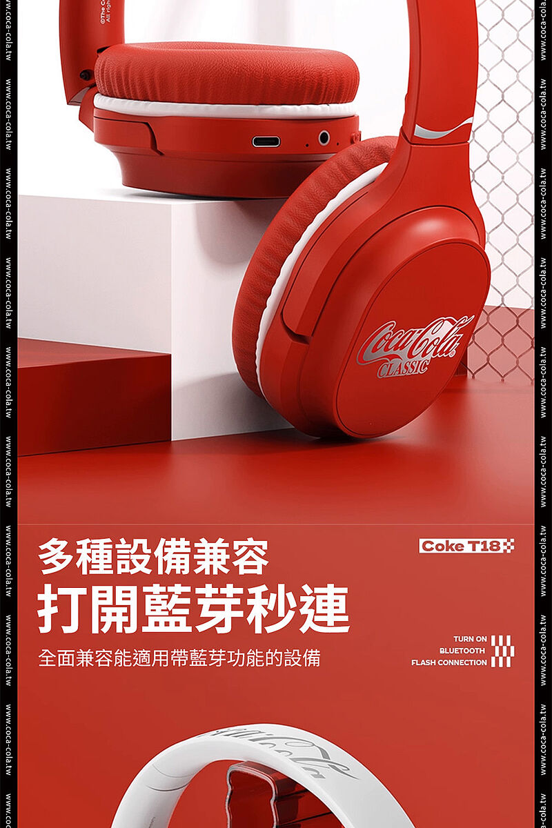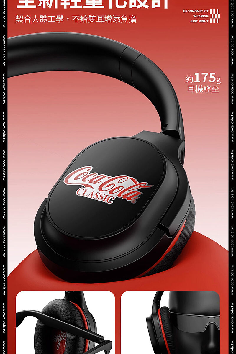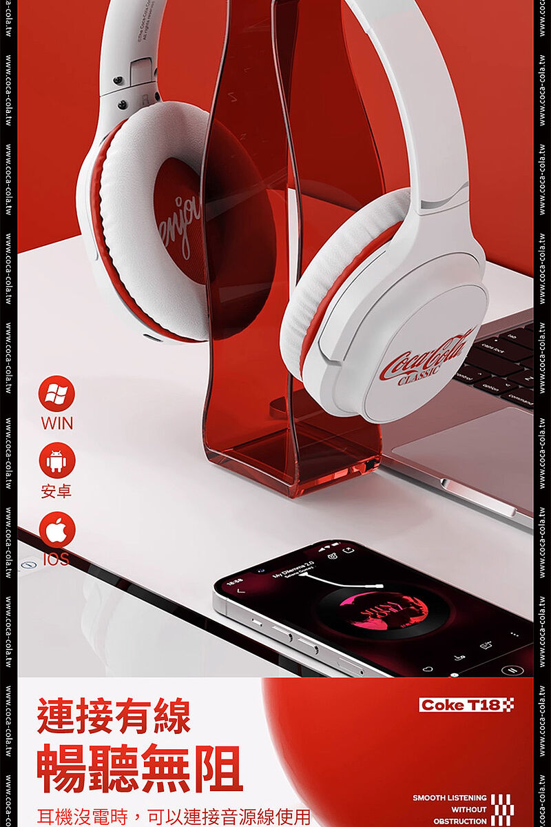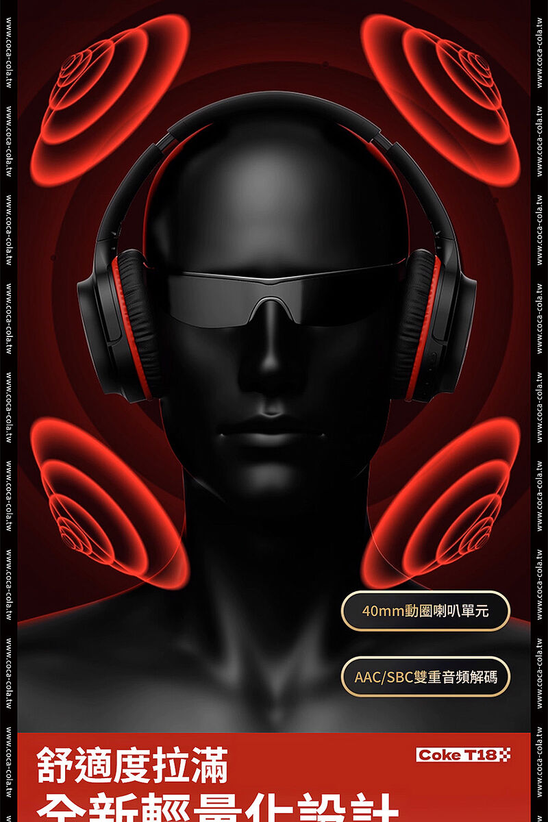 【Coca-cola】可口可樂 頭戴可折疊式降噪藍芽耳機 T18