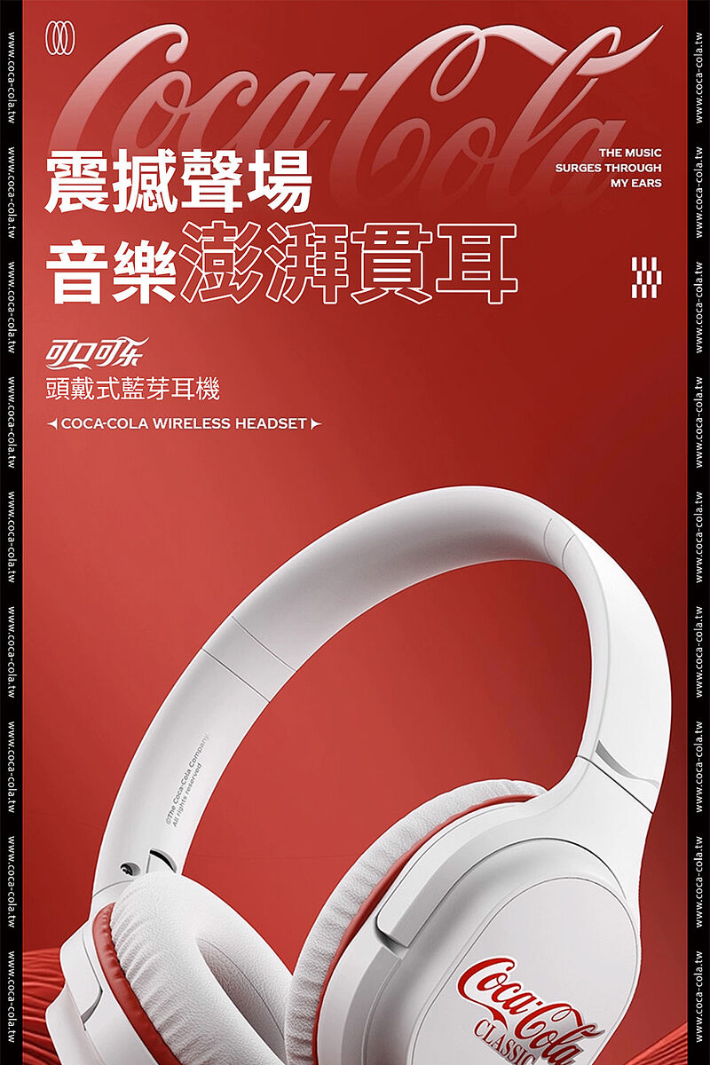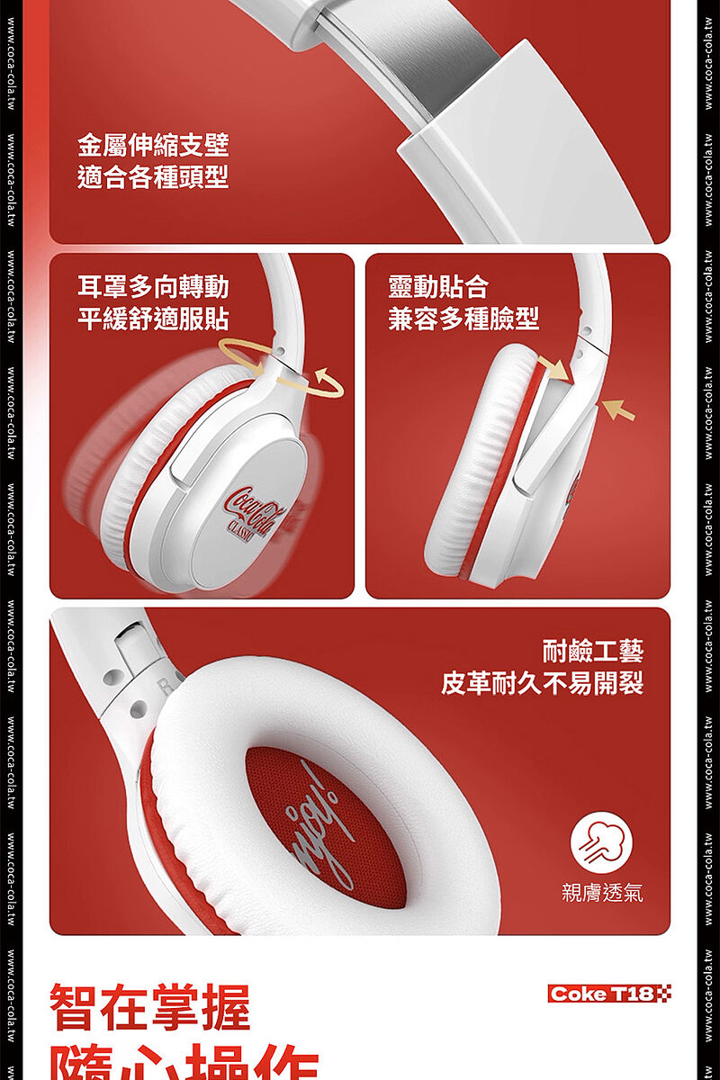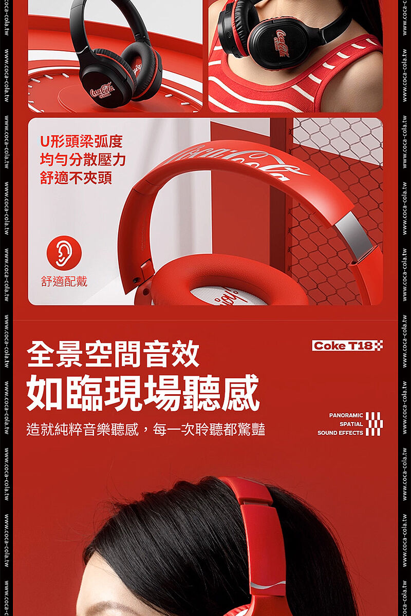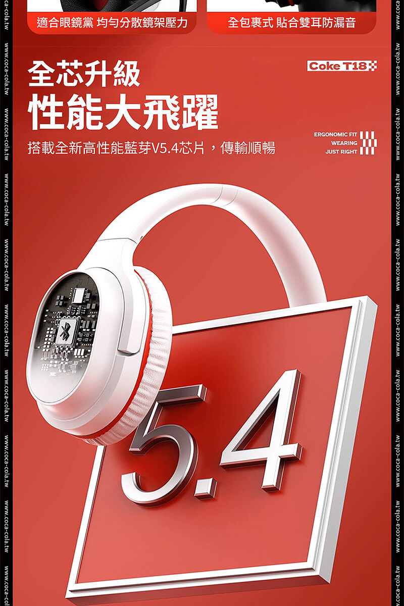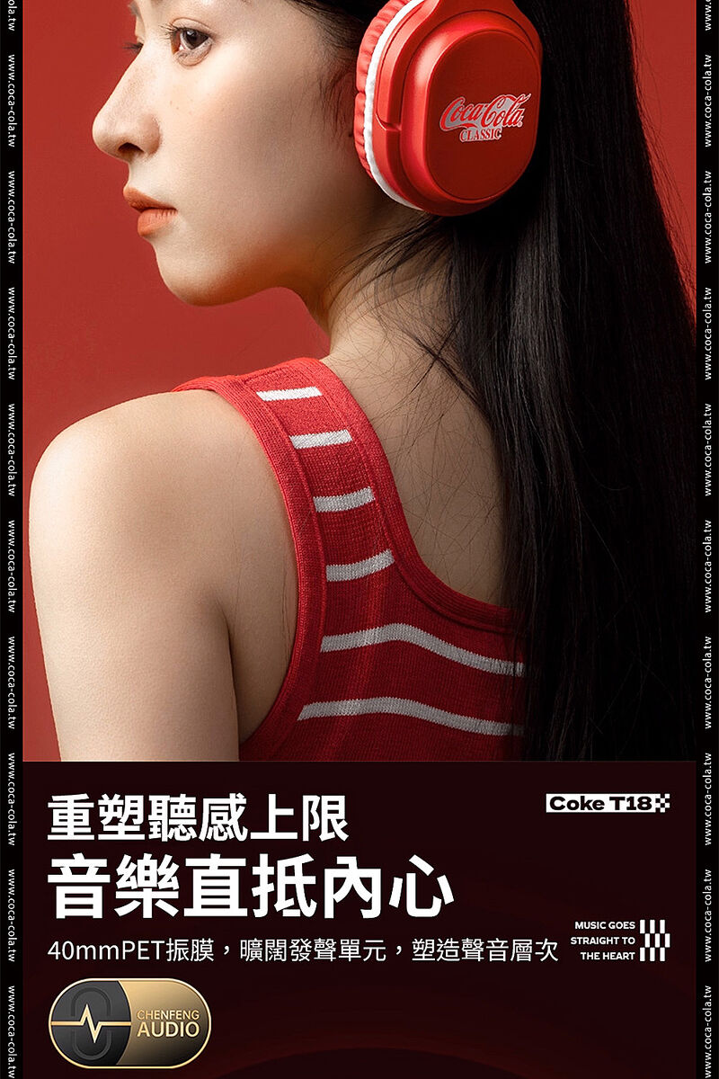 【Coca-cola】可口可樂 頭戴可折疊式降噪藍芽耳機 T18