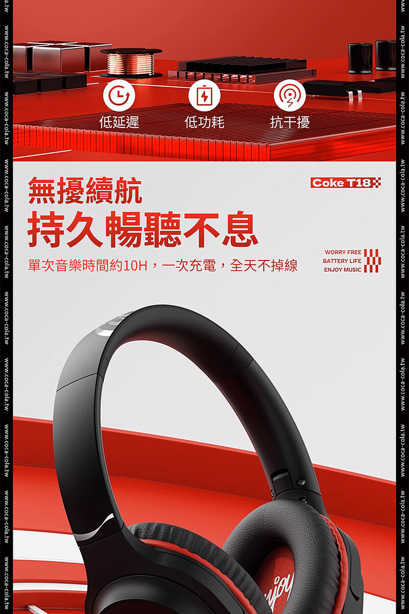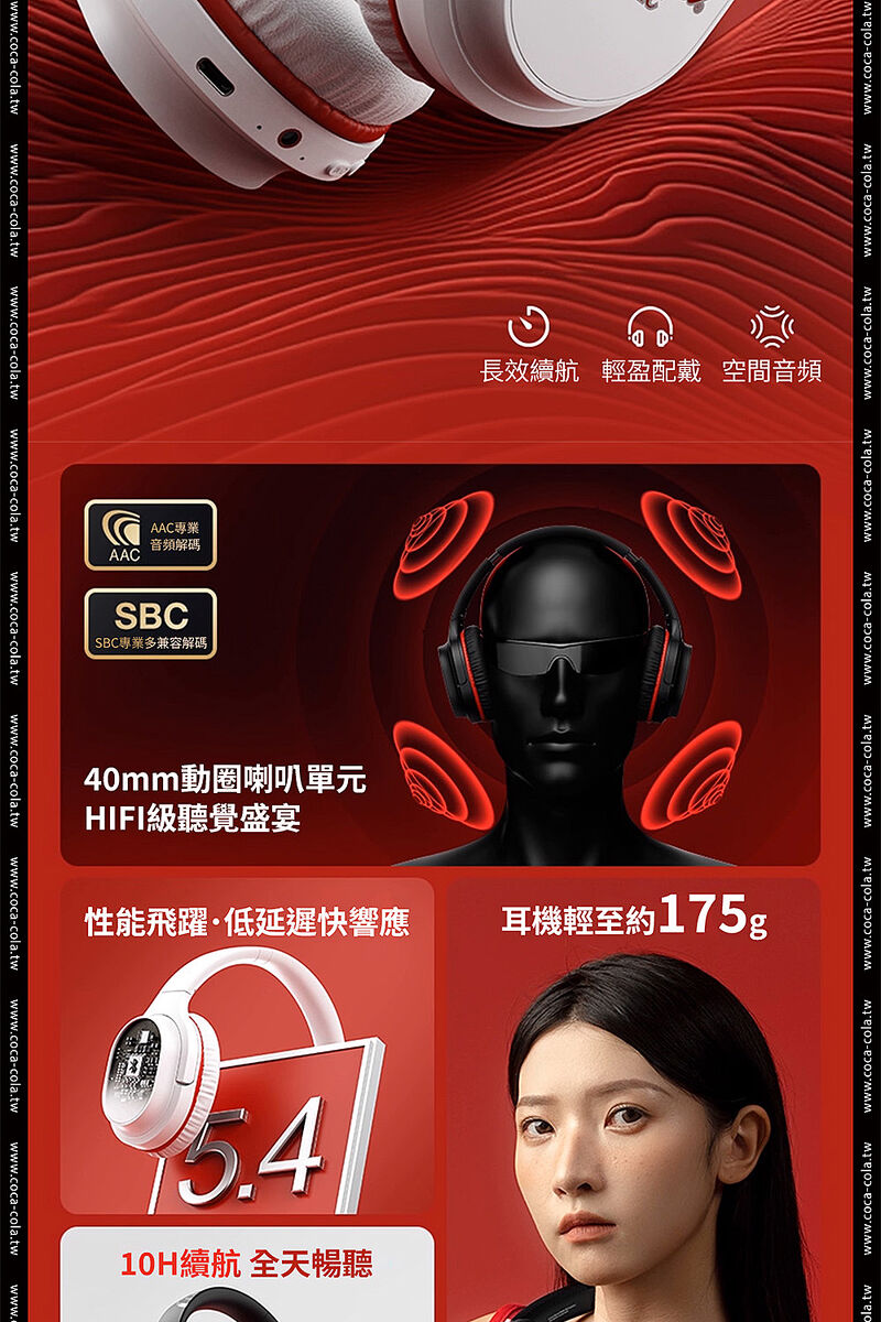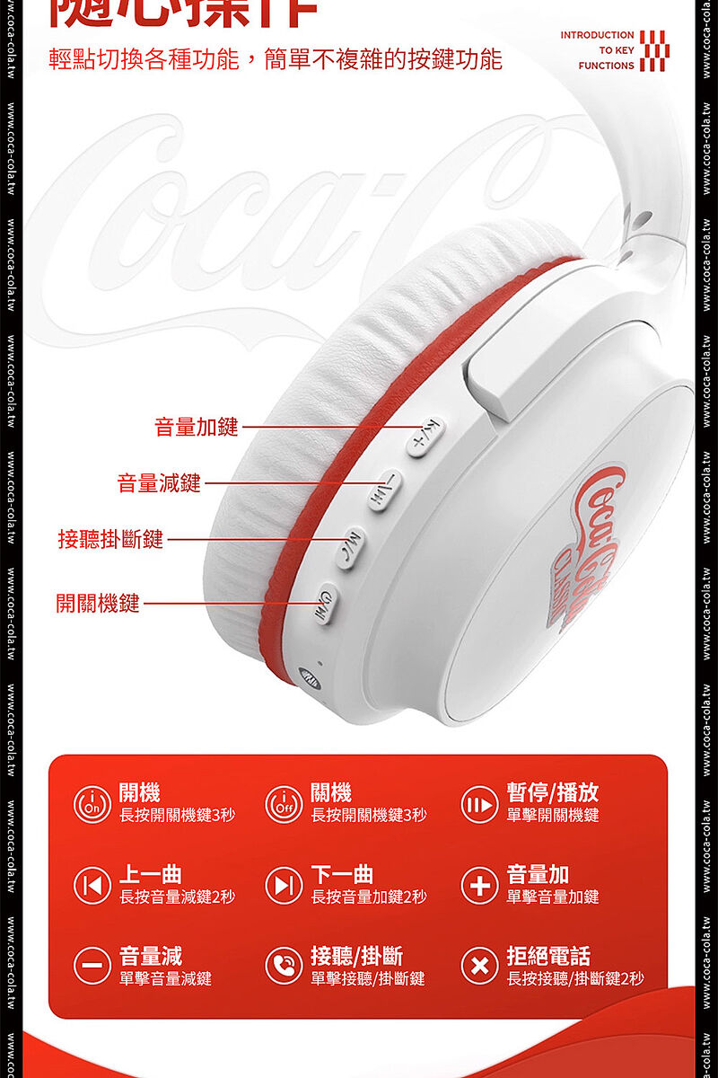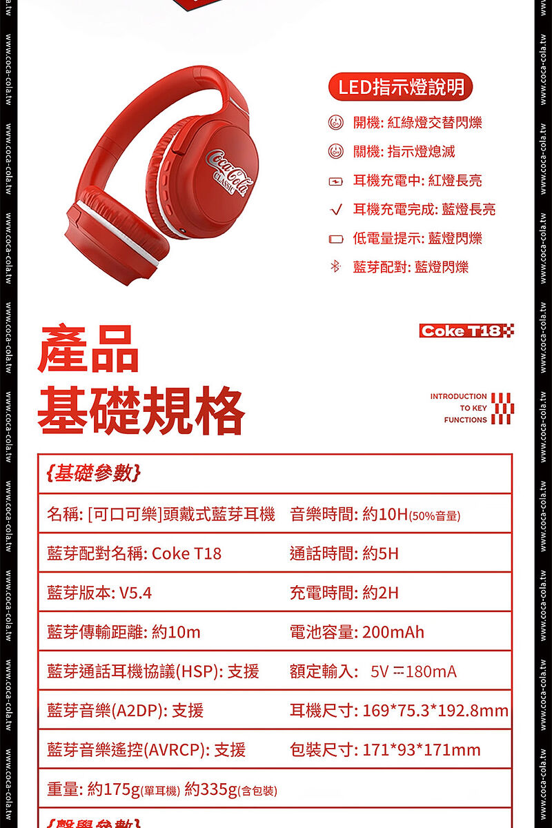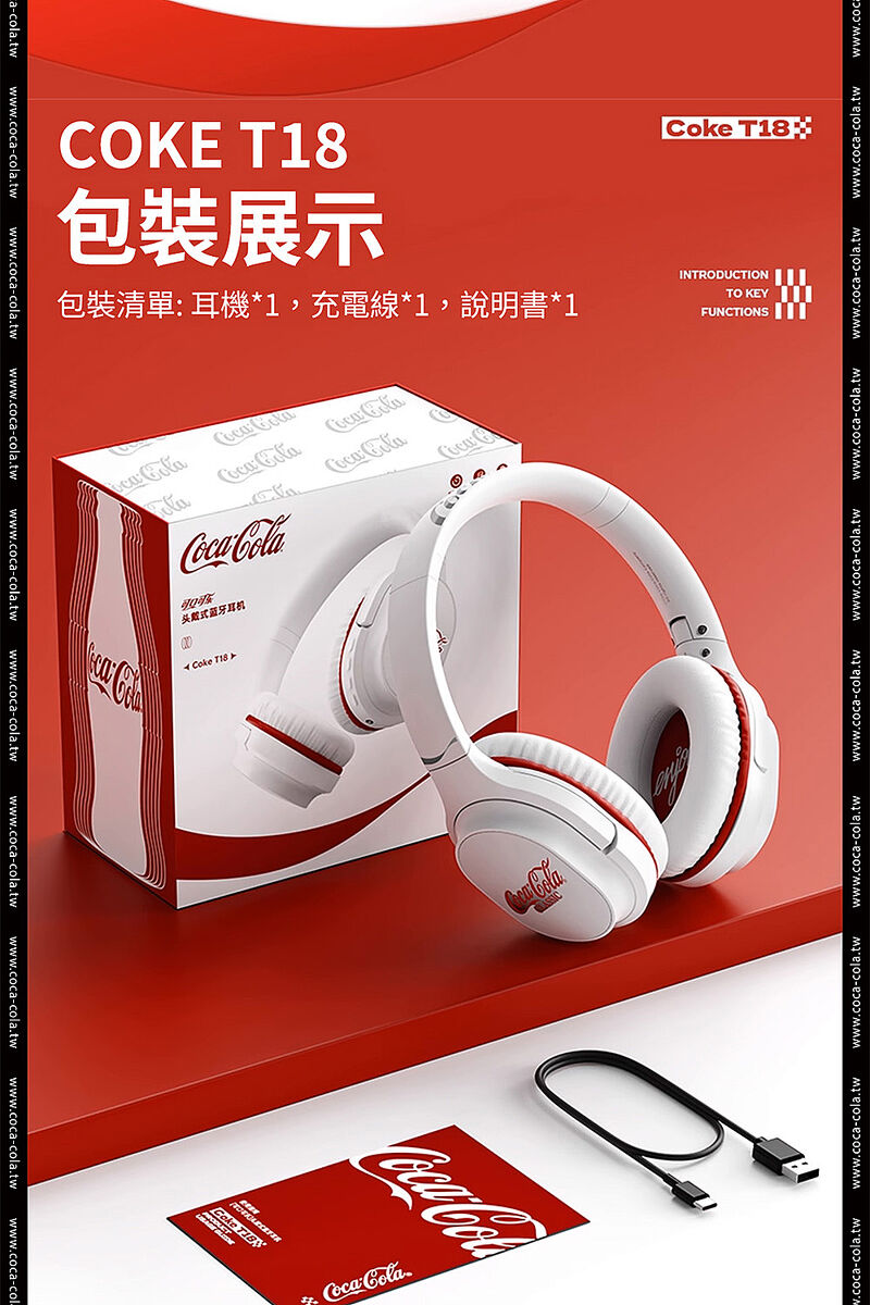 【Coca-cola】可口可樂 頭戴可折疊式降噪藍芽耳機 T18