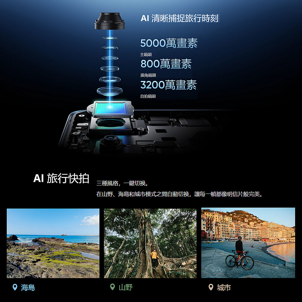 ◎ 後置 5,000 萬畫素主鏡頭 + 800 萬畫素超廣角鏡頭