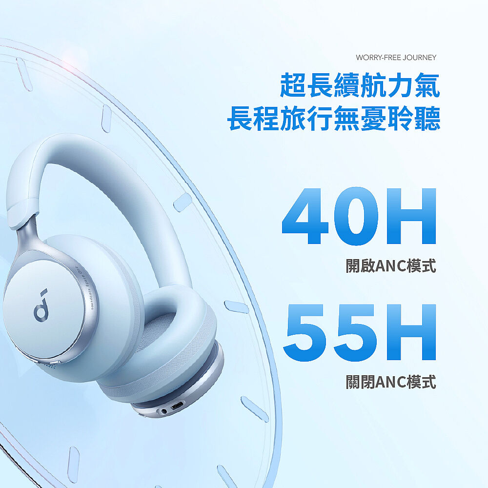 Soundcore Space One 降噪藍牙耳罩式耳機 雪藍