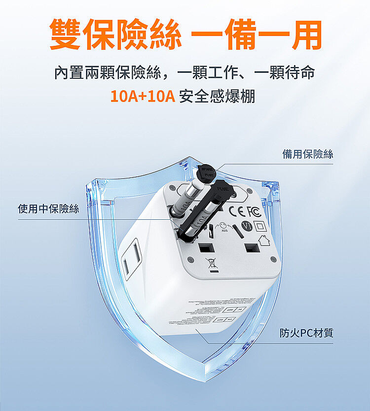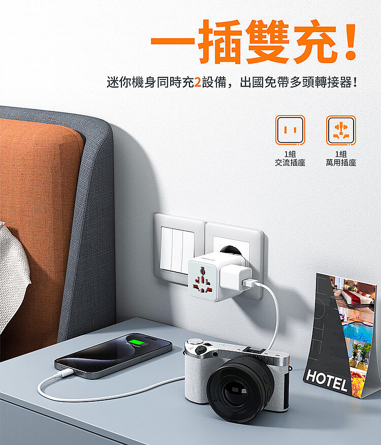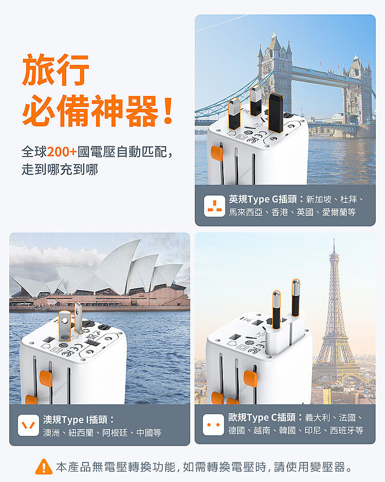 --交流插座x1+萬座插座x1,全球200+國電壓自動匹配--