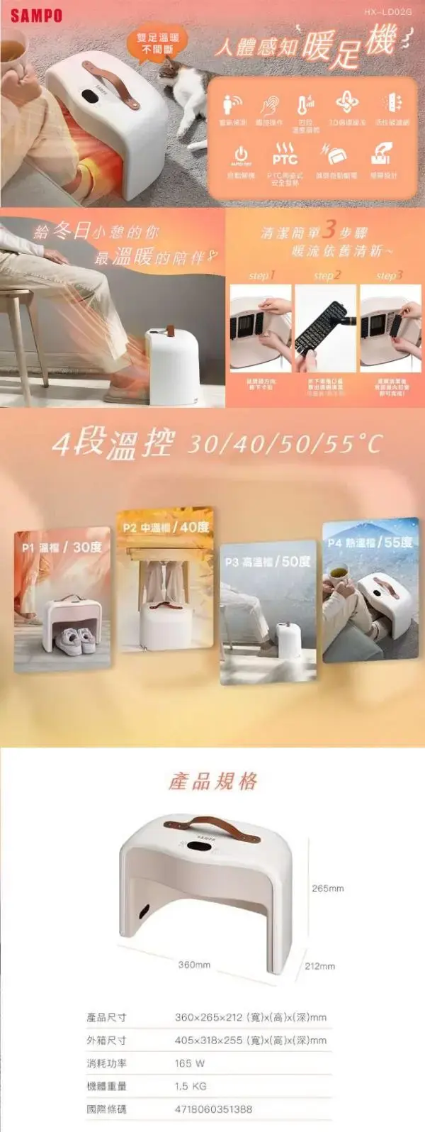 SAMPO聲寶 人體感知陶瓷暖足機 HX-LD02G