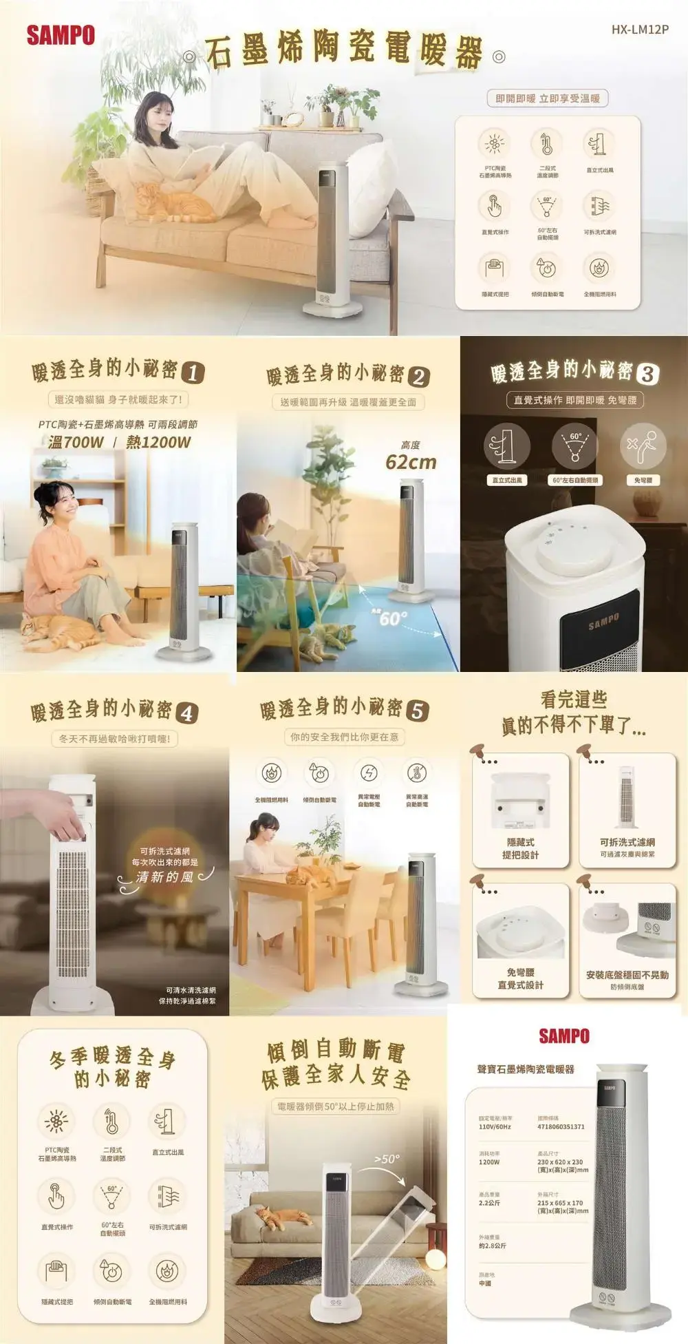 SAMPO聲寶 石墨烯陶瓷電暖器 HX-LM12P