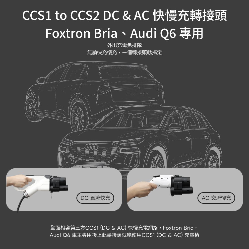 ➋ CCS1 to CCS2 DC & AC 快慢充轉接頭 (Foxtron Bria、Audi Q6專用)