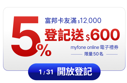 一、指定銀行卡友滿額登記送600元 myfone online電子禮券(限量50名)