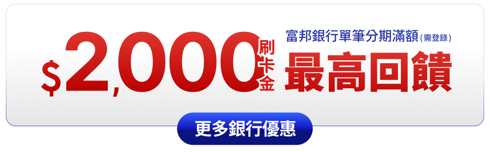 活動說明:活動期間持富邦銀行信用卡刷卡累積消費滿12,000元,即可參與登記回饋,於2026/1/31 00:00開放登記,最後登記時間為2026/2/5 23:59,逾期視為放棄,於登記時間結束前完成登記之前50名始具得獎資格,一人限一次得獎機會,不得重複領獎。