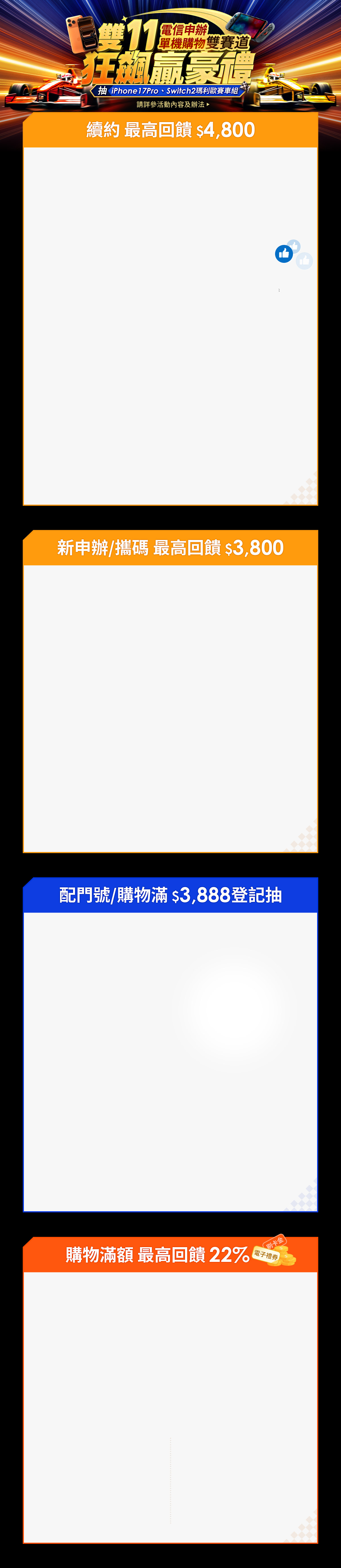 【雙 11 電信申辦/單機購物雙賽道 狂飆贏豪禮】
