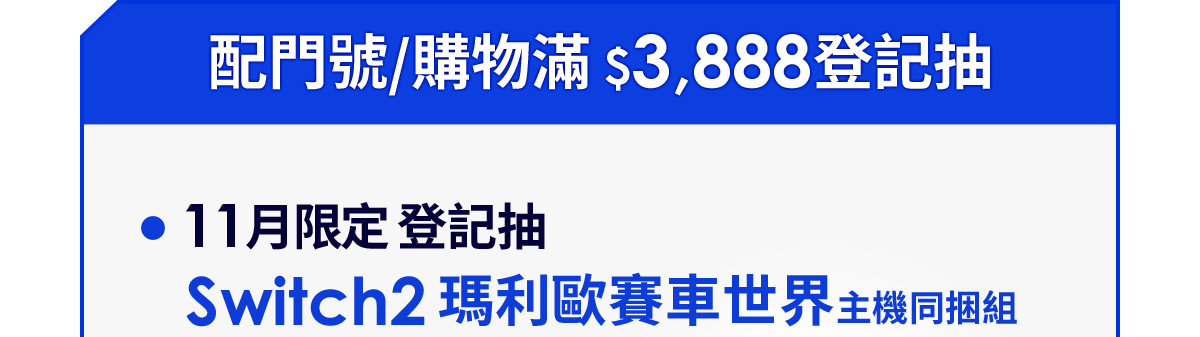 活動說明:獎項總價值超過25萬:獎項為電信申辦指定專案登記抽「F1日本大獎賽尊榮朝聖之旅(價值20萬以上) 」、配門號/購物登記抽「Switch2 瑪利歐賽車世界主機 同捆組 (價值$15,580) 」、11/6~11/12雙11加碼配門號/購物登記抽「Apple iPhone 17 Pro 256G (不挑色,價值$39,900) 」,上述獎項累加最高價值超過25萬。