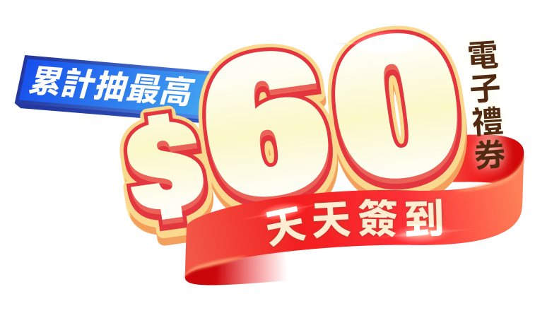 【馬上開運暢遊七國 再抽萬元大紅包】天天簽到累計抽最高$60電子禮券