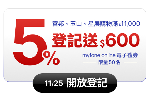一、指定銀行卡友滿額登記送600元 myfone online電子禮券(限量50名)