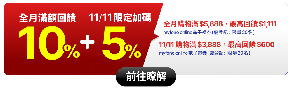 - 每個myfone網路門市會員帳號,於活動期間產生之訂單取消、退貨等條件超過 3 次(含),將失去參與本活動之資格。
